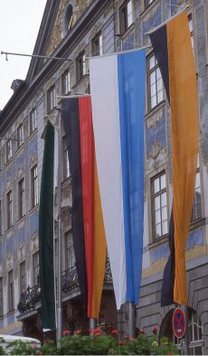 Leifahnen als Banner in der Größe 120 cm X 300 cm in rot/weiß blau/weiß gelb/weiß grün/weiß schwarz/rot/gold Bundesländer. Die Verleihung gilt über ein Wochenende Abholung oder Versand am Donnerstag Rückgabe zum Mittwoch 12,00 Uhr in Coburg