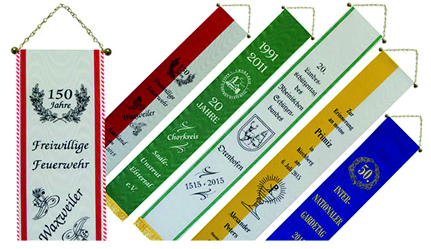 Die Erinnerungsbänder sind Gastgeschenke für die besuchenden Fahnenabordnungen.